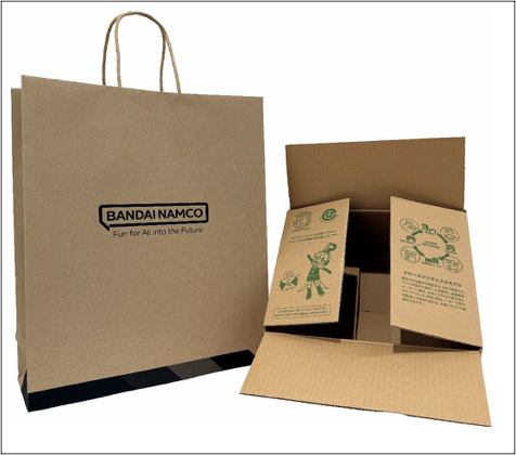今回の取組みは、バンダイロジパルの拠点で排出された使用済み段ボールをリサイクルし、梱包用段ボールとして再利用します。丸紅グループ2社(丸紅フォレストリンクス、興亜工業株式会社)は使用済み段ボールの回収、再生紙の生産・供給を行い、シモジマは梱包用段ボールの製品化を行っています。この取組みで生まれた段ボールは、バンダイナムコグループ公式通販サイト「PREMIUM BANDAI(プレミアム バンダイ)」で提供が開始されています。また、バンダイナムコグループ各社で使用している紙袋も、同スキームで生産された製品に順次変更いたします。